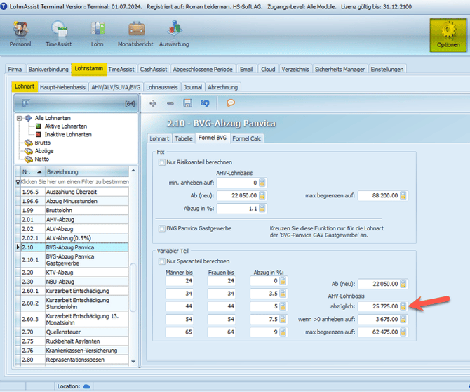 Damit die BVG richtig berechnet wird müssen Sie ab Januar 2025 den alten Wert von 25'725.00