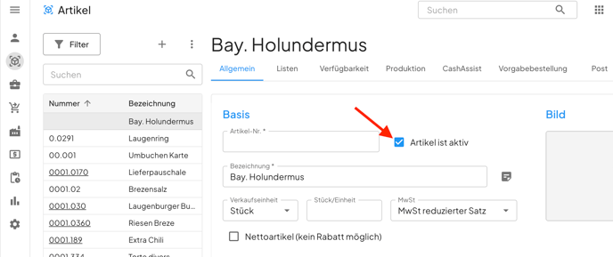 Falls du CashAssist im Einsatz hast, wird der Artikel dort entsprechend auch deaktiviert, sobald er im WawiAssist deaktiviert wurde.
