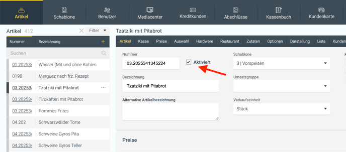 Sichtbarkeit eines Artikels im CashAssist einstellen (falls man keinen wawi im Einsatz hat)