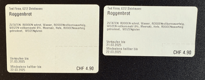 Das Layout ist bei grossen und kleinen Etiketten identisch – bei den kleineren ist allerdings weniger Platz für den Deklarationstext.