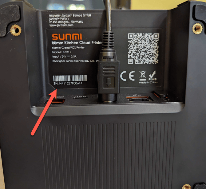 Die Seriennummer findest du auf dem Label an der Unterseite des Druckers.