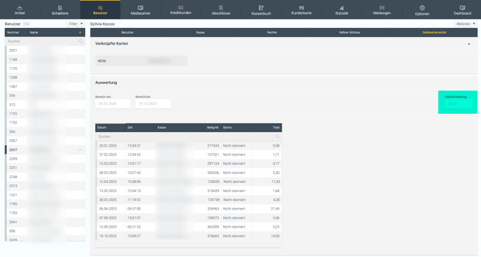 Wenn du erfahren möchtest, für welchen Wert eine Mitarbeiter*in Rabatte in Anspruch genommen hat, geht das ganz einfach in CashAssist.
