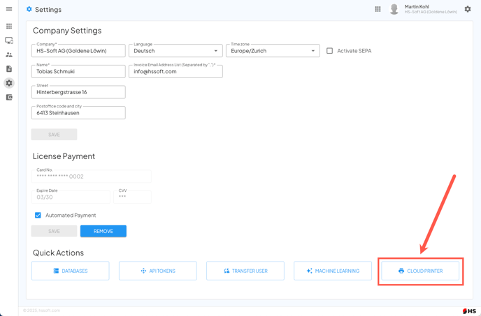 Prüfe, ob sich deine Cloud Printer bereits in der 🔗 HS-Soft Console befinden.